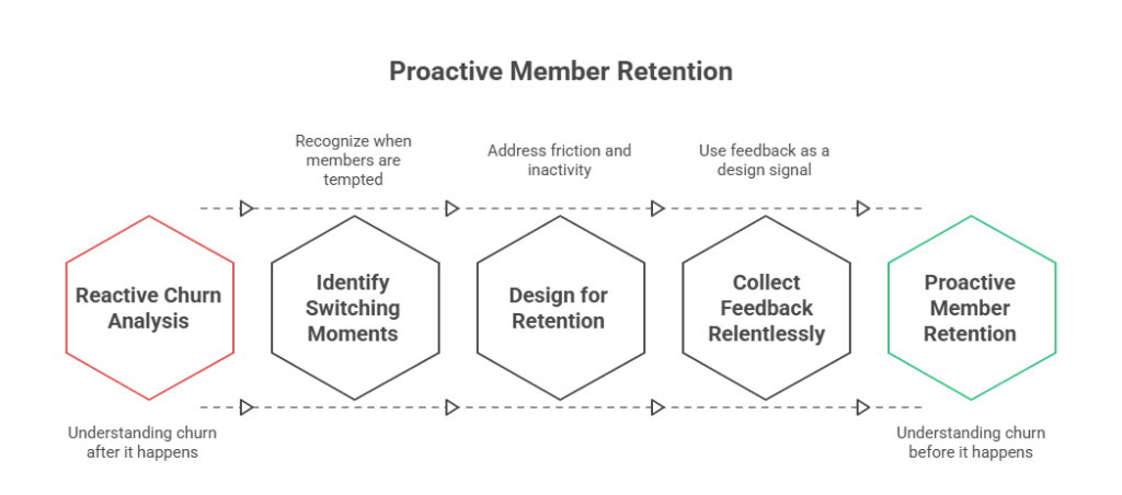 The most important insight: many members don’t leave because of significant problems. They leave because of a thousand minor frustrations that compound. The design challenge is to catch those minor frustrations early and fix them before they drive someone away.