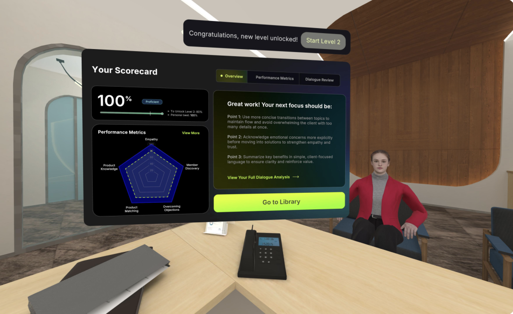 For our VR Training Academy, at a high level, we’re building Artificial Intelligence (AI)-powered VR training experiences where frontline staff can practice real-world conversations in a safe, repeatable environment. The goal is simple: help people build confidence and shift toward more member-centric, consultative interactions. But when I look back at a similar project we did two years ago, I realize how much our understanding of that goal has evolved.