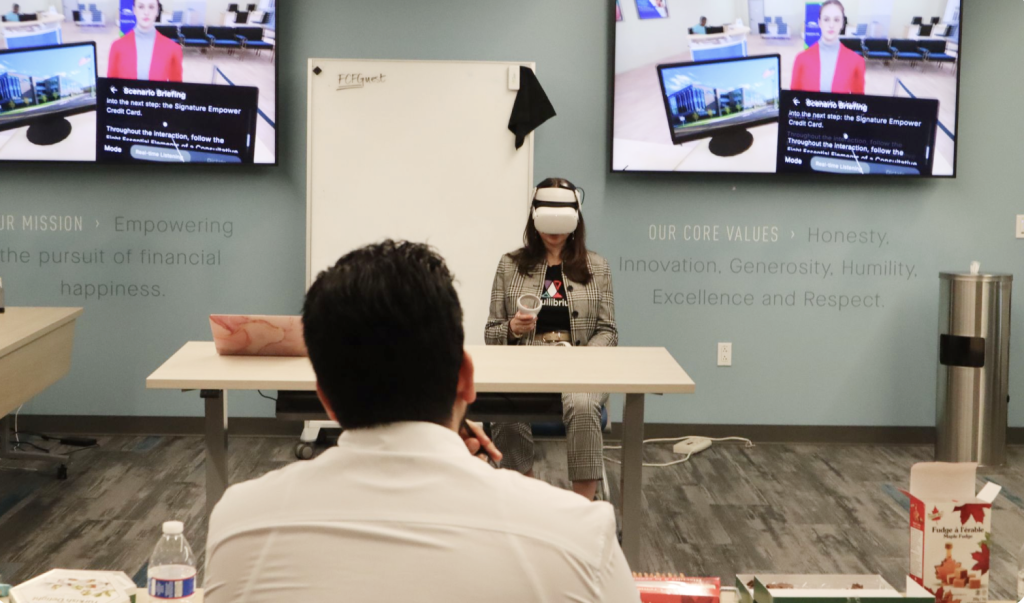In 2024, we partnered with Ent Credit Union (now Wings) to simulate member-facing conversations in VR. The experience was structured, guided, and predictable. We designed clear flows, defined interaction paths, and a conversational agent that behaved in expected ways. From a UX perspective, it worked. It gave us a solid foundation and shaped our early definition of what “immersive training” could be.